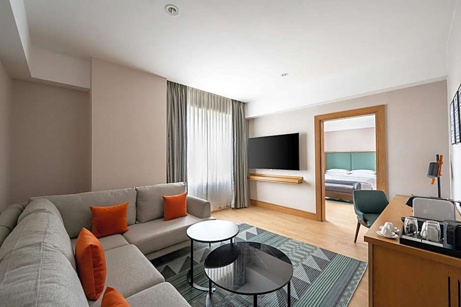 The spacious suite provides air conditioning, a tea and coffee maker, as well as a private bathroom featuring a bath and a hairdryer. The suite offers a seating area, a wardrobe, a safe deposit box and a flat-screen TV with cable channels. The unit offers 1 bed.